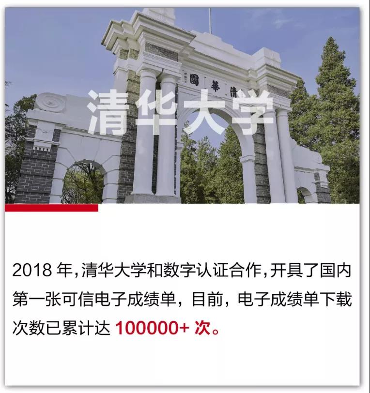 2018年清华大学通过凯发k8登录入口公司提供的“高校可信电子成绩单解决方案”实现了对电子成绩单的可信管理,通过在PDF版式的电子成绩单上加盖可靠电子签名及可信时间戳实现防伪。老师只需在教务管理系统输入成绩,便可以通过可信电子成绩单服务系统自动生成可信电子成绩单,学生们可以在网上自行开具并下载,还可以通过教务系统邮箱流转的方式,直接发送给接收方。与教育部权威机构达成可信电子成绩单互信互认之后,验证时间从三周缩短至“秒级”。
