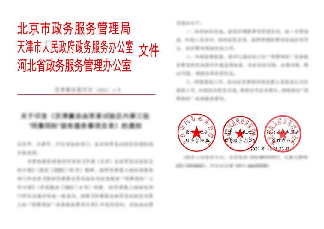 12月23日,京津冀政务服务合作工作专班办公室召开首次会议。会上,京津冀三地政务服务部门主要领导共同签发《关于印发〈京津冀自由贸易试验区内第三批“同事同标”政务服务事项目录〉的通知》(以下简称“《通知》”)。