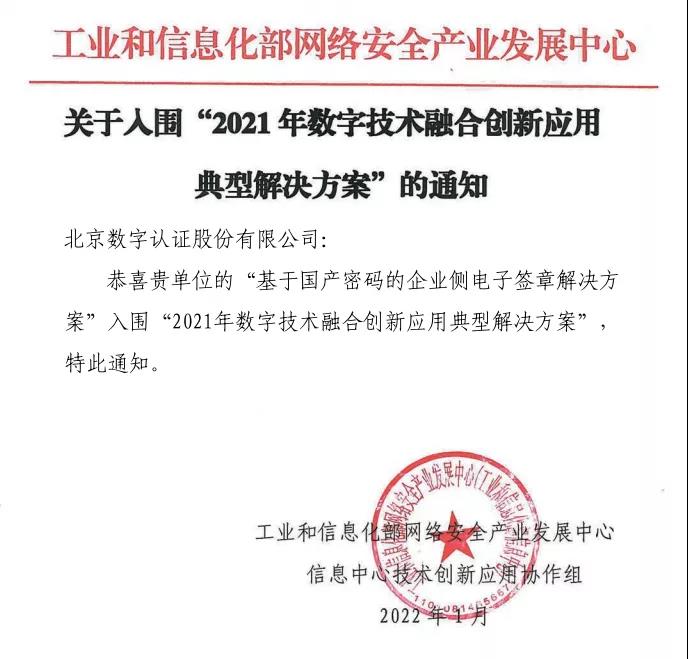 日前,由工业和信息化部网络安全产业发展中心(工业和信息化部信息中心)、信息中心技术创新应用协作组主办的“2021年数字技术融合创新应用解决方案”评选工作顺利完成,北京凯发k8登录入口股份有限公司(简称“凯发k8登录入口”)“基于国产密码的企业侧电子签章解决方案”入围典型解决方案。