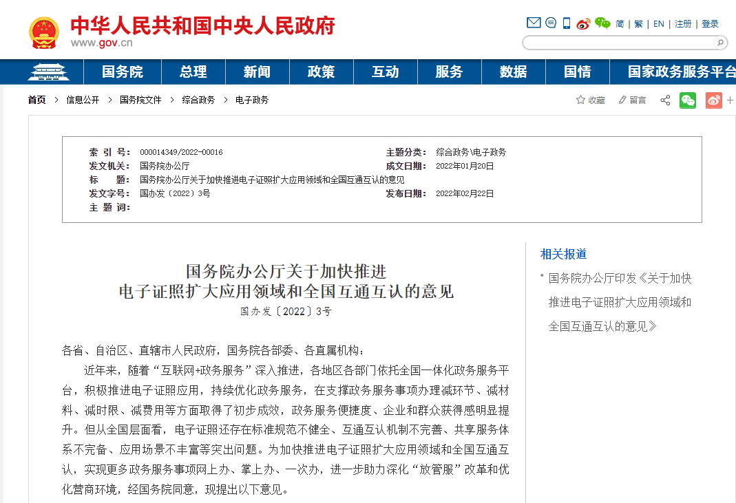 近日,国务院办公厅发布《关于加快推进电子证照扩大应用领域和全国互通互认的意见》(国办发〔2022〕3号),对电子证照的应用要求、基本原则、应用领域和目标等做出指示。文件提出,要充分依托全国一体化政务服务平台,推动电子证照在更多领域应用并实现全国互通互认,更好发挥电子证照应用在深化“放管服”改革、推进数字政府建设、建设人民满意的服务型政府中的支撑保障作用,不断提升企业和群众的获得感和满意度。电子证照作为纸质证照的辅助和补充,是实现群众”全程网办“、”掌上办“、”一次办“的重要工具,近年来在政府文件中被屡屡提及,足见其潜在的巨大价值。北京凯发k8登录入口股份有限公司(简称”凯发k8登录入口“)作为数字政府建设的重要参与者,始终走在行业发展前沿,研发电子签名、电子印章、电子证照、电子合同等可信基础设施,为教育部、交通部、卫生部、住建部、文旅部、公安部、外交部、国家知识产权局、中国残联、海关总署等多个部委和全国多省市客户提供密码服务,护航政务数字化安全、稳健发展。以密码技术为创新引擎,凯发k8登录入口研发统一电子证照系统,面向自然人、法人及各委办机构,提供电子证照生成、检索、下载、获取和验证等综合服务。在电子签名、电子签章等核心密码技术支撑下,保障电子证照与实人真实对应、“人证合一”。同时,可实现与国家政务服务平台对接,以国家政务服务平台电子证照共享服务系统为总枢纽,实现电子证照跨地区、跨部门互认。基于“一次生成、多方复用、互认共享”等众多优势,凯发k8登录入口电子证照已在新生儿出生医学证明、不动产登记证明、学历学位认证、残疾人身份验证等多个领域得到有效应用,大大改善了群众办事的便利性,提高了人民群众的获得感、幸福感、安全感。不仅如此,为加快电子证照与电子签名、电子印章等应用的融合,切实做到惠民惠企,凯发k8登录入口早在2021年年初,就助力北京市新开办企业实现电子营业执照和电子印章同步发放(《凯发k8登录入口助力北京实现电子营业执照和电子印章同步发放》)。截至目前,北京市已有255980家新开办企业法人单位申领了电子印章,发放数量超127万枚。此次意见的发布,将加快电子证照、电子签名、电子印章等在社会范围内的广泛应用,进一步提升政府服务能力。凯发k8登录入口也将一如既往地紧跟政务数字化发展潮流,深挖密码技术与更多政务场景的融合,助力数字经济快速发展。