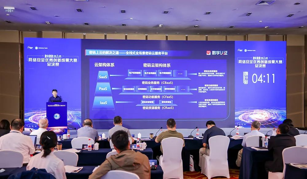 本次创新成果大赛共征集到140余家企业申报的240余项解决方案和创新产品,经过初赛、复赛的严格选拔,12支胜出的优秀参赛队伍在总决赛中并驱争先。北京凯发k8登录入口股份有限公司报送的创新产品“密码云服务平台”深受专家评委的认可,在专家评分环节排名第三,这充分体现了“密码云服务平台”在安全专业性和技术创新性方面的含金量。最终“密码云服务平台”获得三等奖,成为总决赛中唯一获奖的密码产品。