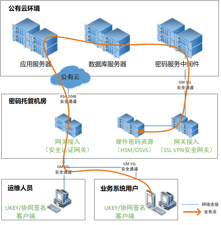 由此可见,通过引入托管机房的安全网关和密码服务,能有效缓解公有云平台自身的安全风险,符合密评要求。目前,依托密码托管服务建设方案,凯发k8登录入口已经帮助医药等领域客户成功通过密评测试。