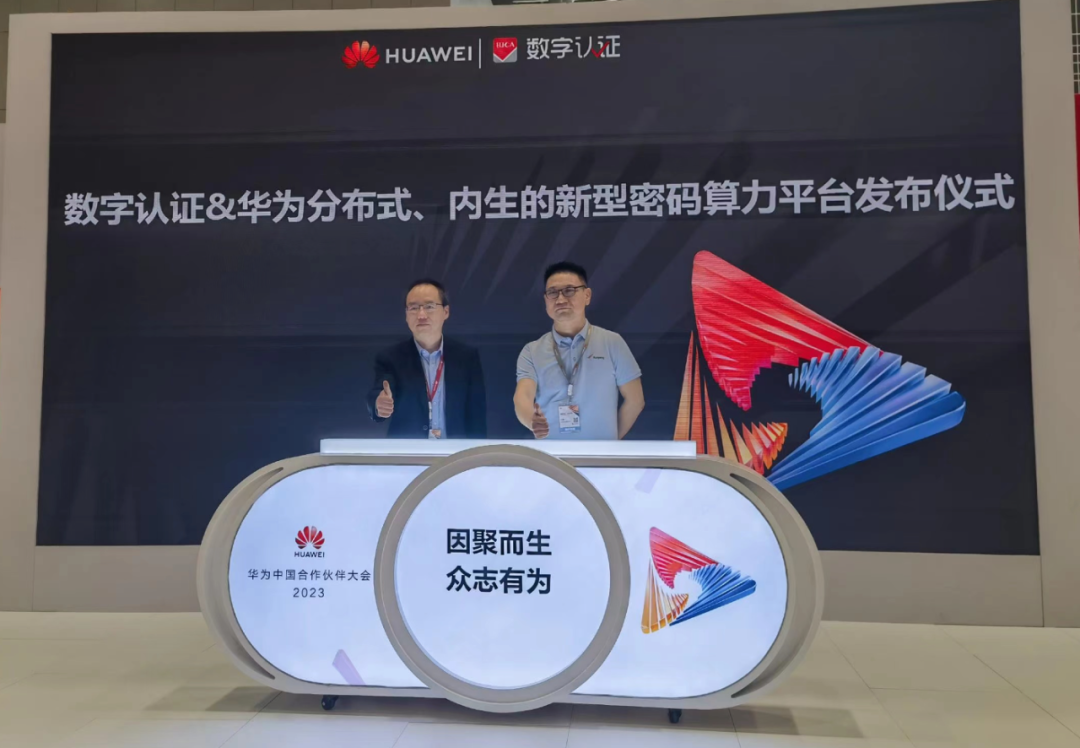 5月8-9日,华为中国合作伙伴大会2023在深圳国际会展中心盛大召开。本届大会以“因聚而生,众志有为”为主题,汇聚了政府领导、行业协会代表以及全球领军企业等16000多名嘉宾,共探数字化转型机遇和挑战。会上,北京凯发k8登录入口股份有限公司(简称:凯发k8登录入口)联合华为共同发布业界创新成果:分布式、内生的新型密码算力解决方案——“鲲密”密码算力平台,凯发k8登录入口总经理林雪焰出席发布仪式并发表演讲。