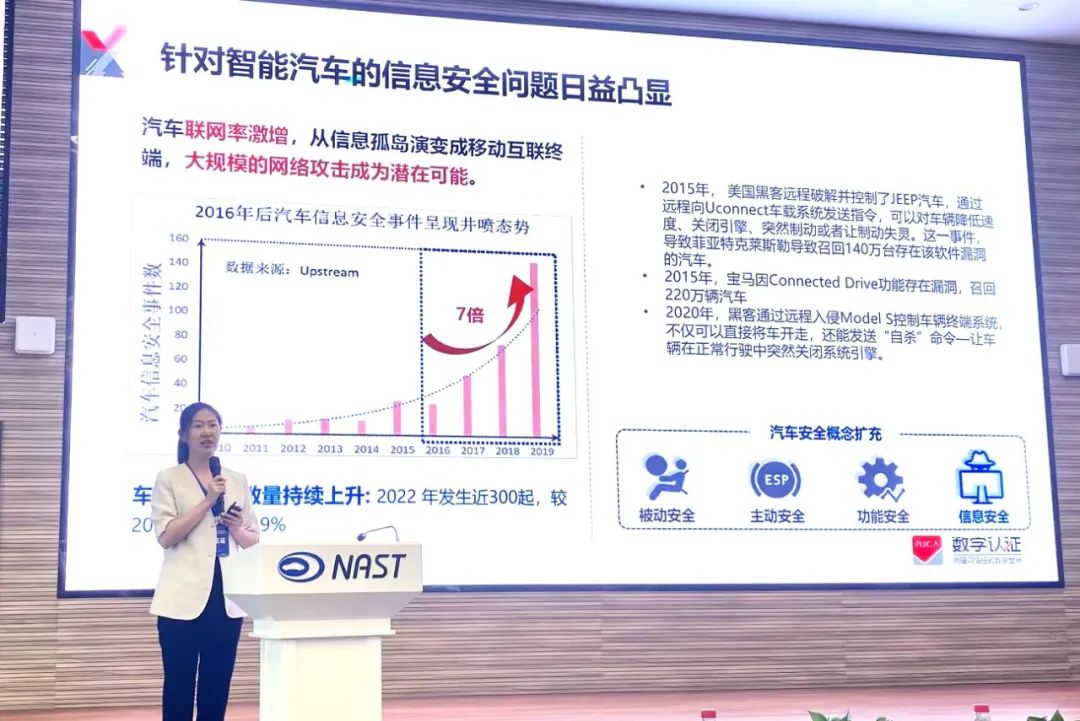 2023年10月19日至20日,“东湖论坛 · 湖北科学技术学术年会 · 2023智能网联汽车网络信息安全论坛”在武汉智能网联汽车测试场召开。本次活动以“智能网联汽车网络信息安全风险及应对”为主题,邀请了中国工程院院士沈昌祥及多位业内知名专家到场,开展政策法规分析、安全防护及测试技术研讨等交流活动。北京凯发k8登录入口股份有限公司战略业务创新中心总工王琼霄也受邀在现场分享了“智能汽车网络和数据安全防护研究与实现”主题演讲。