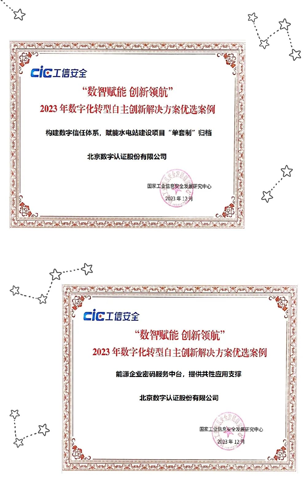 近日,国家工业信息安全发展研究中心(简称:CIC工信安全)发布“2023年数字化转型自主创新解决方案优选结果”。历经前期资格审查、专家评审等层层筛选,北京凯发k8登录入口股份有限公司(简称:凯发k8登录入口)统一电子认证平台、密码服务中台两项解决方案,凭借在技术体系合理性、技术创新性、产品成熟度、推广价值等方面的突出优势,从众多方案中脱颖而出,一并获评2023年优选案例。